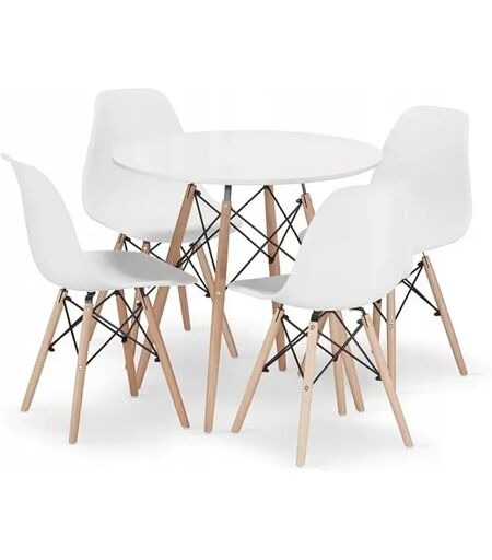 Conjunto de Jantar Valora Mesa Redonda Branca KOVA 80cm + 4 Cadeiras Brancas OSAKA