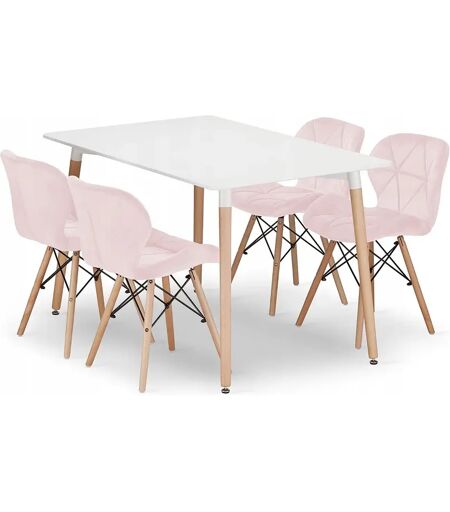 Mesa retangular Valora YURO 120x80 branca + 4 cadeiras WAKO rosa