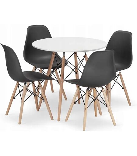 Mesa redonda Valora KOVA Ø80 branca + 4 cadeiras OSAKA pretas