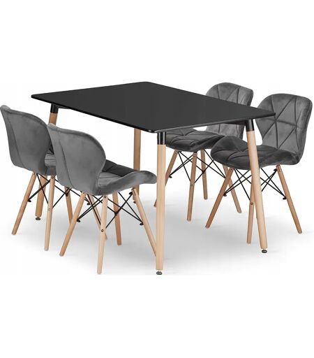 Mesa retangular Valora YURO 120x80 preta + 4 cadeiras WAKO cinza