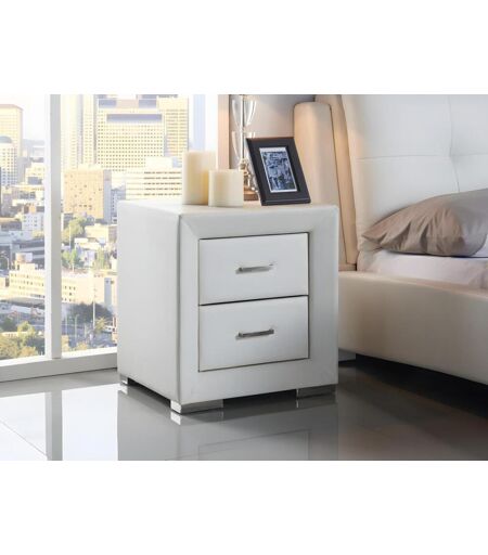 Vente-unique Mesa de cabeceira CAPITOLE - 2 gavetas - Pele sintética branca