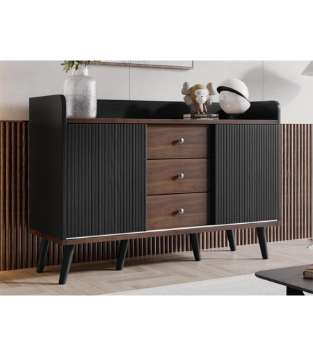 Merax Aparador moderno com 2 portas 3 gavetas - prateleira de armazenamento - grão requintado - cores preto e marrom