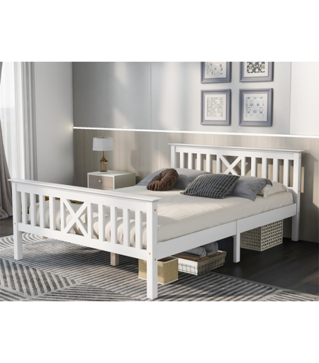 Merax Cama com cabeceira - 140 x 200 cm - pinho - base de ripas - cor branca