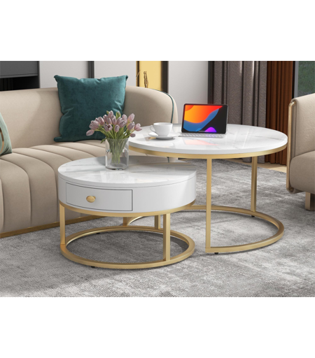 Merax Conjunto de 2 mesas de centro encastradas com gaveta - estilo escandinavo - folheado com padrão de mármore - branco