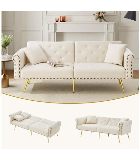 Merax Sofá-cama moderno de 2 lugares – 173 x 75 x 70 cm – encosto ajustável em 3 níveis + pernas de metal dourado – veludo – bege