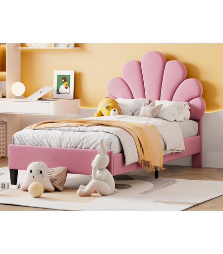 Merax Cama concha com cabeceira 90 x 200 cm em veludo, base de ripas incluída, rosa