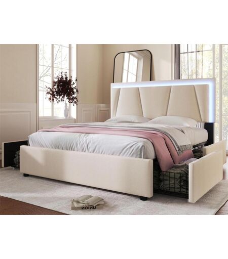 Merax Cama com cabeceira regulável - 140 x 200 cm - 4 gavetas - LEDs - base de ripas - cor bege