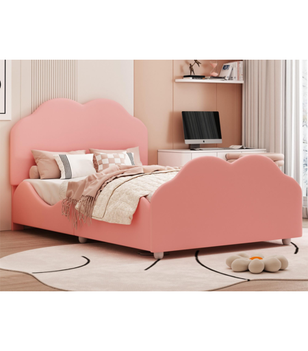 Merax Cama com cabeceira em forma de nuvem 90 x 200 cm - veludo - para crianças - cor rosa