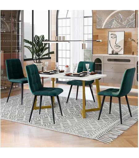 Merax Conjunto de mesa de jantar 117 x 68 cm com 4 cadeiras estofadas em veludo - pernas em metal dourado - Branco + verde