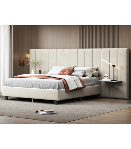 Merax Cama estofada 160 x 200 cm com cabeceira e encosto alongados - prateleiras - veludo - bege