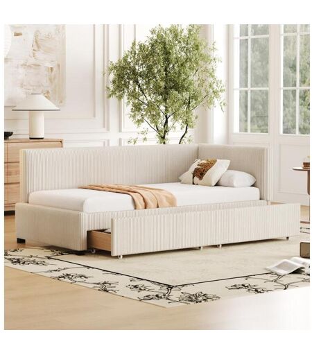 Merax Cama estofada 90 x 200 cm, sofá cama, com 2 gavetas e cabeceira macia, tecido veludo, bege (sem colchão)