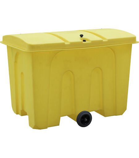 Recipiente de armazenamento com rodas, volume 1000 l, fechável à chave, CxLxA 1460 x 1010 x 1015 mm, a partir de 3 unid. Fornecimento = montado. Capacidade = 1000 l. Comprimento = 1460 mm. Largura = 1010 mm. Altura = 1015 mm. Material = polietileno. Cor do recipiente = amarelo. Cor da tampa = amarelo. Altura da abertura de remoção = 950 mm. Largura da abertura de remoção = 1250 mm. Peso = 40 kg. Característica = proteção UV, com fecho, acesso inferior, móvel. Equipamento de rodas = 2 rodas fixas, 2 rodas orientáveis com imobilizadores. Tipo de produto = carrinhos universais. Móvel e acessível com empilhadora. Para interior e exterior - com tampa fecháveis à chave. Construção robusta em PE - utilização versátil. Recipiente de armazenamento e transporte fechável à chave, móvel, robusto e versátil em polietileno altamente resistente. Tampa articulada robusta - fechável à chave com fechadura de cilindro. Móvel e fácil de manusear graças às rodas . Existem reentrâncias adicionais no lado exterior do fundo para o transporte por empilhadora . À prova de intempéries - para instalação no interior e exterior . Utilização versátil: Ideal, por exemplo, para o armazenamento e transporte de cubas coletoras dobráveis grandes e pesadas, granulados aglutinantes, agentes aglutinantes, produtos de degelo , etc. ...