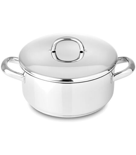 Características Aço inoxidável (acabamento polido). Composto por: Caçarola com asas 32 e Tampa 32 Diámetro: 32cm Capacidade: 9lts Altura: 12,2cm Função: Cozer / Estufar / Ferver Fontes de calor: gás, elétrica, elétrica radiante, vitrocerámica, indução Tecnologia impact DiscPlus ...