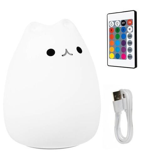 9 MODOS DE BRILHO - 16 CORES A ESCOLHER - o gatinho permite ajustar a iluminação às necessidades da criança. Possui até 9 modos de brilho; o mais brilhante permite até que você leia um conto de fadas antes de dormir, enquanto o mais escuro pode ser usado como uma lâmpada de cabeceira - não vai ferir os olhos da criança e vai garantir um sono tranquilo e seguro. A possibilidade de escolher a cor da luz entre 16 torna possível criar uma atmosfera incomum no quarto de uma criança. TRABALHOS AFETADOS PELO "KICKING" - a lâmpada muda de cor quando é tocada no solo ou com uma vibração um pouco mais forte. Você pode controlá-lo com o controle remoto incluído. Graças a isto, pode apagar o abajur pela porta entreaberta do quarto da criança sem correr o risco de o bebé acordar. SEGURO - formas arredondadas, bordas lisas permitirão a colocação segura da luminária no quarto da criança, sem o risco de a criança, por exemplo, cortar o dedo. É inteiramente feito de silicone flexível, graças ao qual é durável e não quebra - não ameaça a segurança. Uma vantagem adicional da lâmpada é que ela não exala nenhum cheiro! IDEIA DE PRESENTE PARA BRINCAR - um abajur em forma de coelho, perfeito como um presente para uma criança, você pode brincar com ele como uma estatueta de borracha normal. Tal presente certamente trará um sorriso ao rosto de todas as crianças, meninos e meninas. Caraterísticas - Cor branca - Material: silicone - Número de cores de iluminação: 16 - Número de modos de brilho: 9 - Função de transição de cor: sim - Função de salto de cor: sim - Transição rápida de cores: sim - Transição de cor lenta: sim - Fonte de alimentação: bateria de lítio 1200mAh - Carregamento: via cabo USB - Tipo de luz: LED - Potência: 0,5W - Comprimento do cabo: 75cm - Dimensões (comprimento / largura / altura): 15 / 11 / 11cm - Peso: 0,205 kg ...
