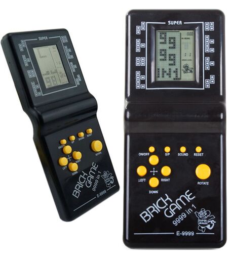 - Tamanho pequeno e compacto - Modelado em consolas retro - Função mudo de música - 16 graus de velocidade de descida do elemento. - 16 níveis de dificuldade - 15 padrões de formas diferentes. - Função de pausa e reinicialização. - Melodia (pode ser desligada) - Alto-falante embutido - Botão de controle de volume - Baixo consumo de energia - Fonte de alimentação: 2 pilhas AA (não incluídas) - 9999 jogos - Dimensões: 18,5 cm x 8 cm x 2 cm - Idade: 3+ - Cor preta ...