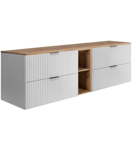 Armário de casa de banho ranhurado FLOW 180 cm branco com estante e tampo carvalho dourado