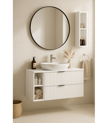 Armário de casa de banho ranhurado FLOW 100 cm branco com estante e tampo