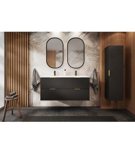 Armário de casa de banho ranhurado FLOW 180 cm preto com estante branca e tampo