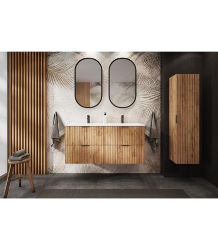 Armário de casa de banho ranhurado FLOW 120 cm carvalho dourado com tampo