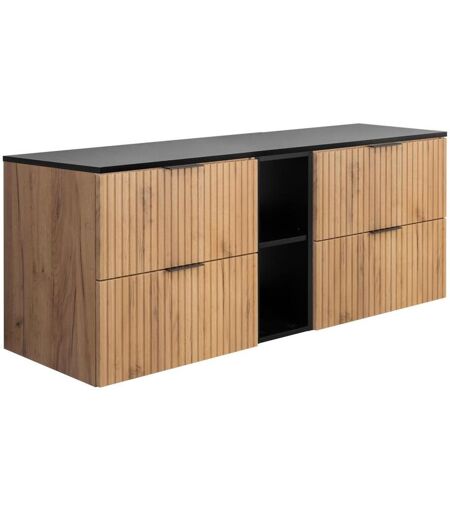 Armário de casa de banho ranhurado FLOW 140 cm carvalho com estante preta e tampo